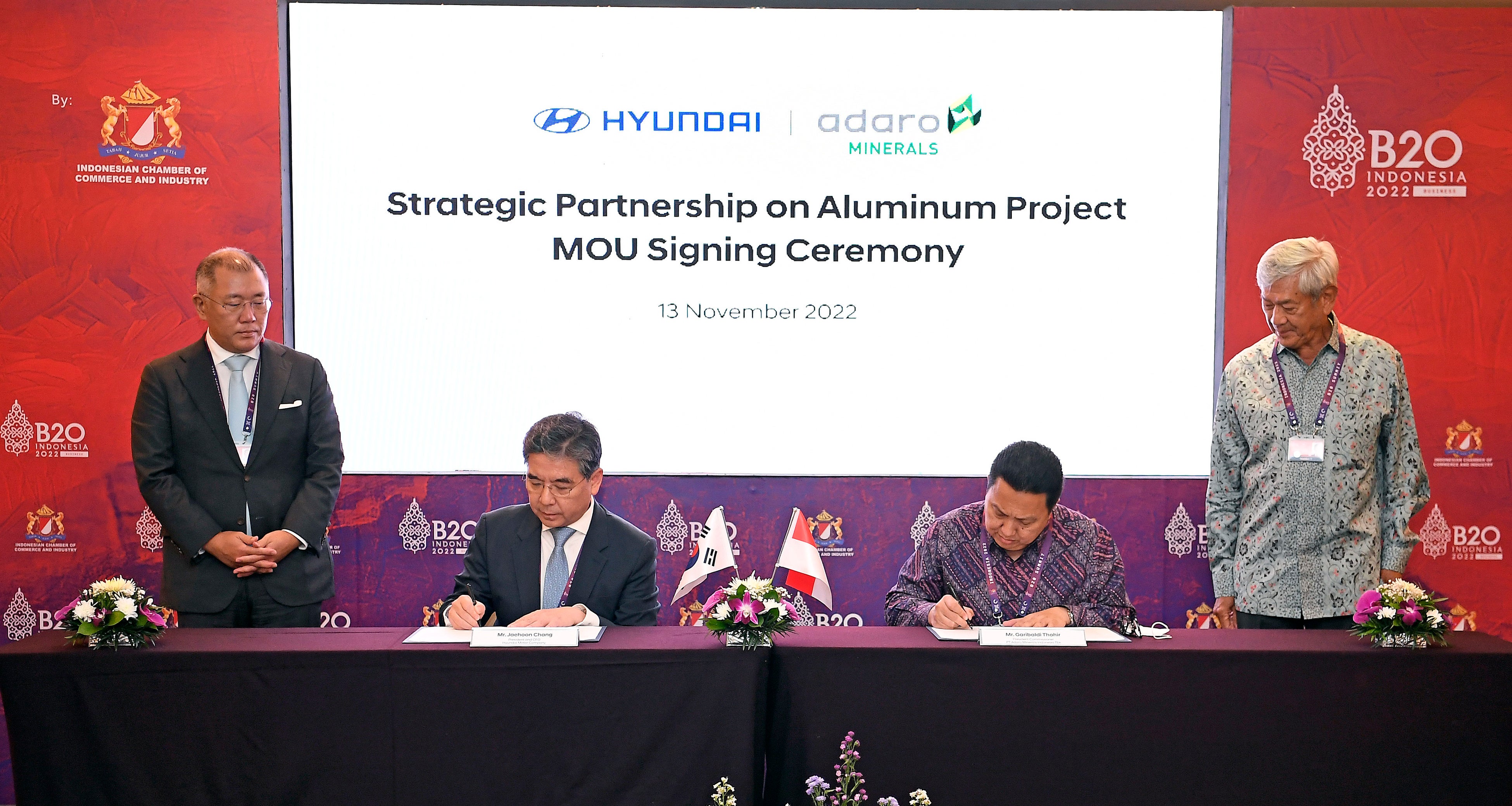Hyundai Motor CompanyとPT Adaro Minerals Indonesia Tbk.が自動車生産の需要拡大に伴うアルミニウムの供給確保に関する覚書に署名