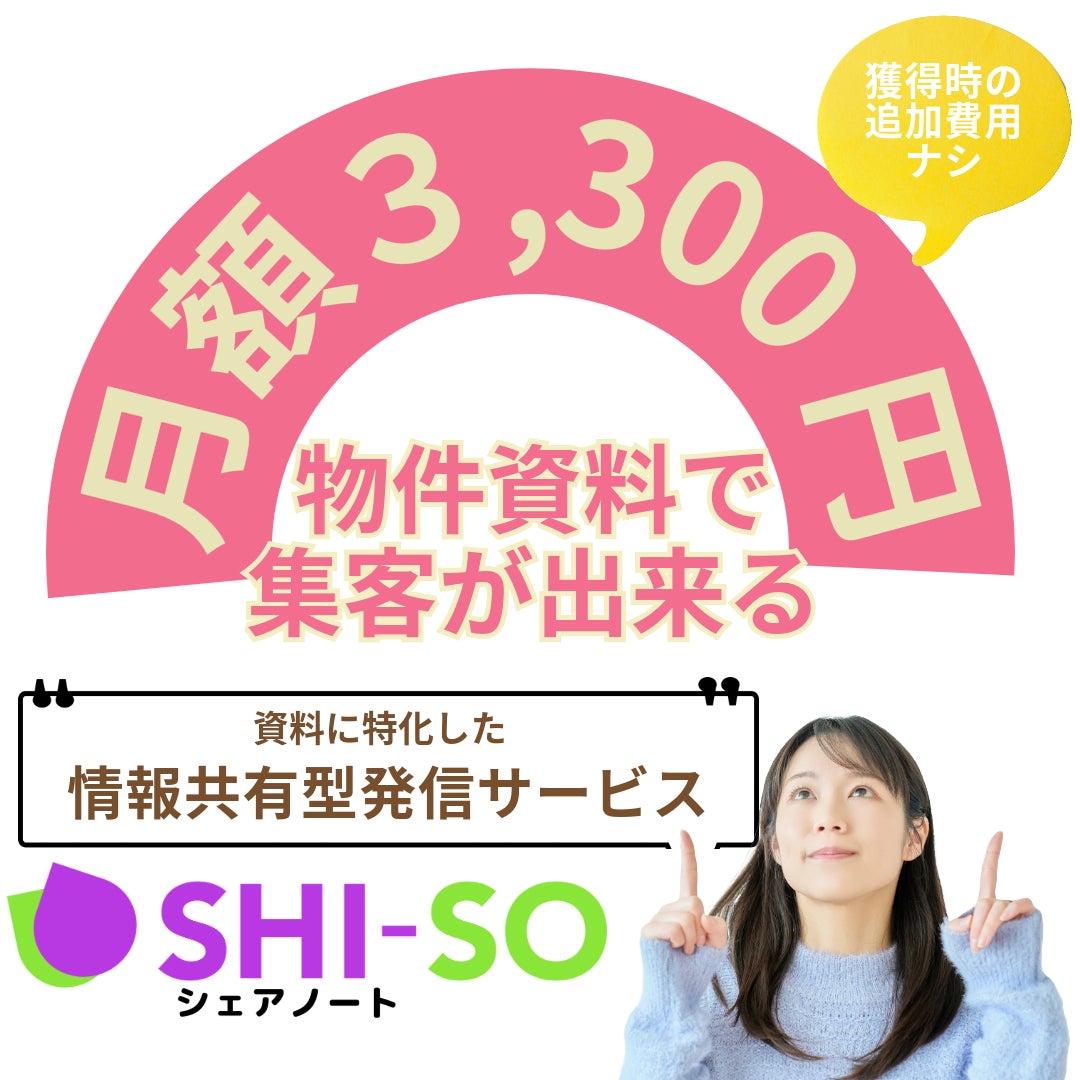 物件資料をスキャンしてアップするだけで集客開始。SHI-SOシェアノート【初期費用・獲得単価ゼロ円】月額3300円