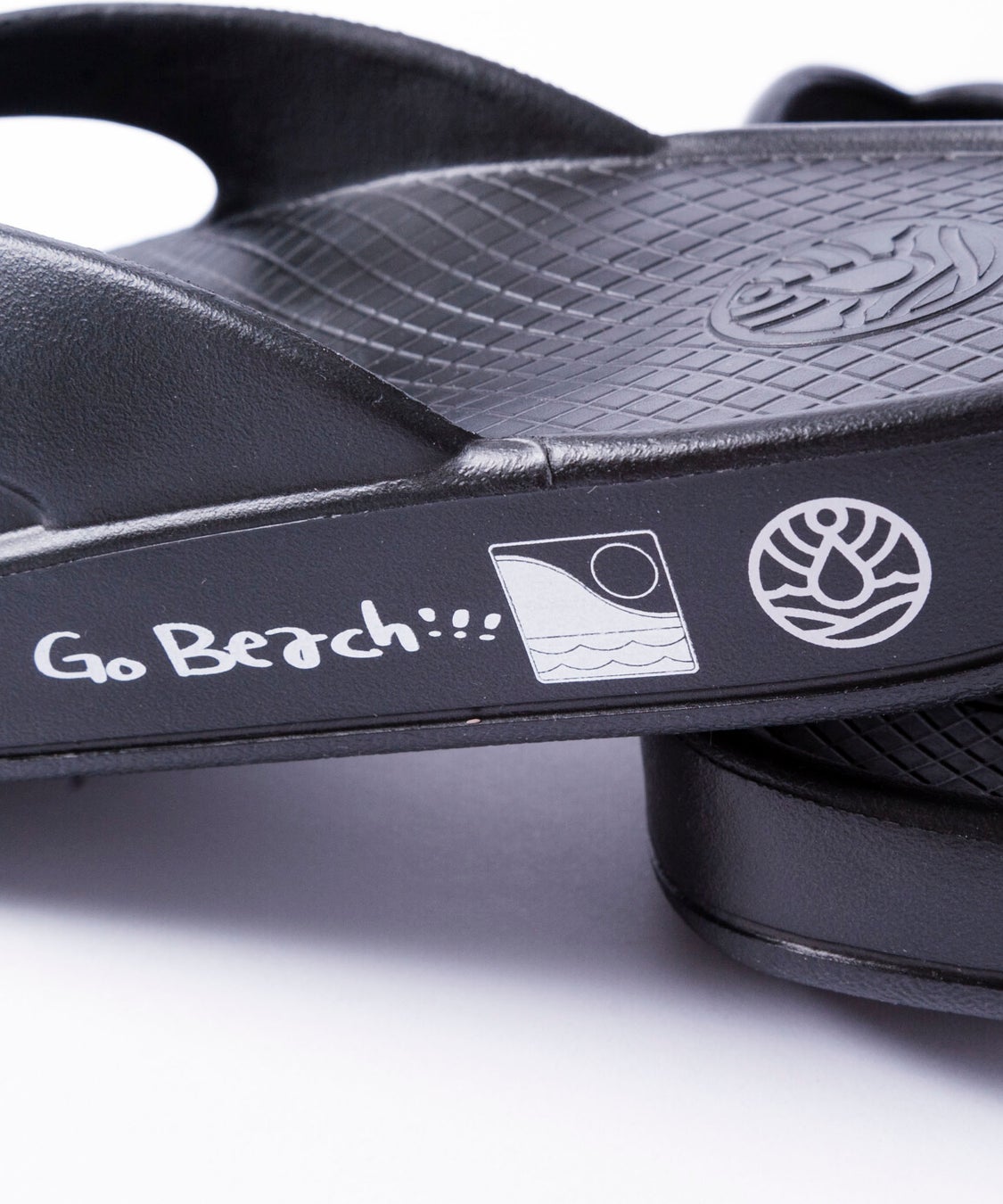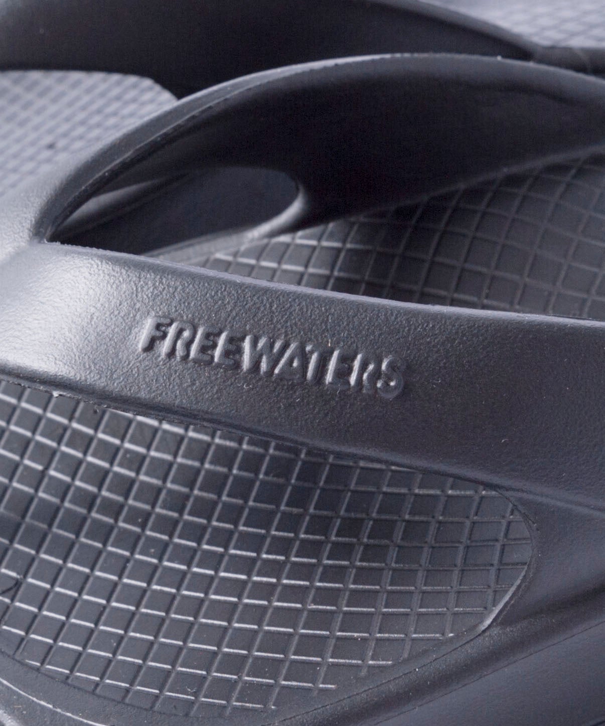 ベースとなっているfreewatersのCloud9 Ultraは、独自開発のEVA素材をオリジナル製法で熱成型させることにより、雲の上を歩くような究極のクッション性を持つトングタイプのサンダルです。そこにサーフカルチャーシーンでは欠かせないフォトグラファーのU-SKEが描いたOFFSHOREのデザインがミックスしたことで、他に無いデザインとテクノロジーが融合したモデルになりました。