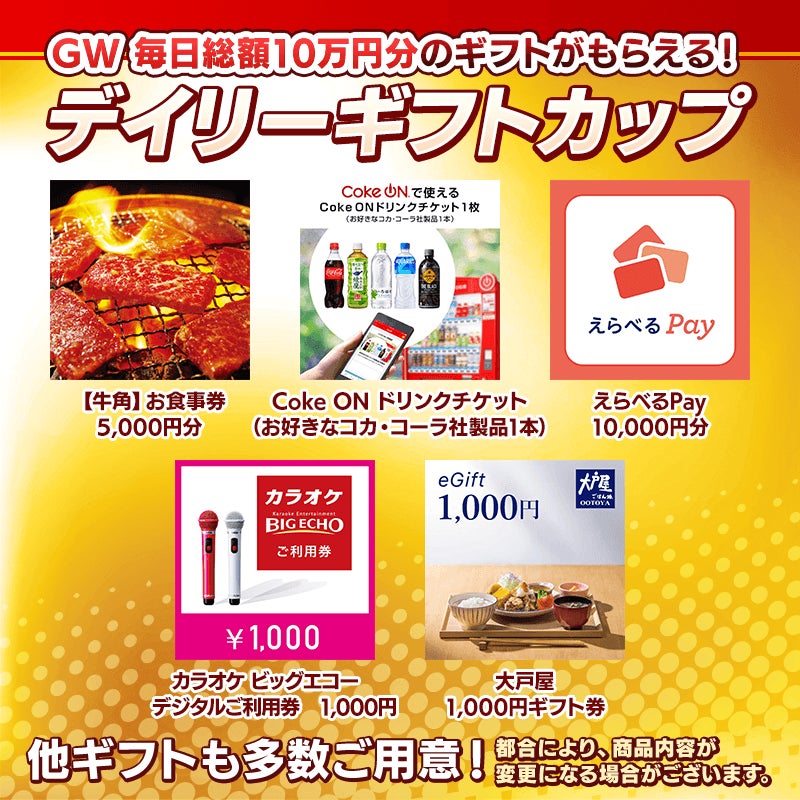 ■「GWデイリーギフトカップ」GW期間中毎日開催!