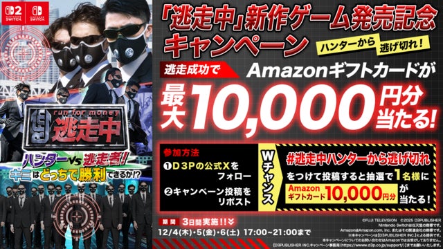 株式会社ディースリー・パブリッシャーは、人気ゲームシリーズ「逃走中」の最新作、Nintendo