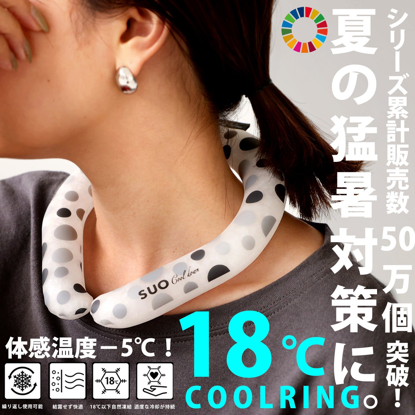 シリーズ累計50万個突破!28℃以下の環境で凍ってひんやり感続く。半永久的に使える、熱中症対策にも効果的なネック用クールリング「28℃ ICE」。