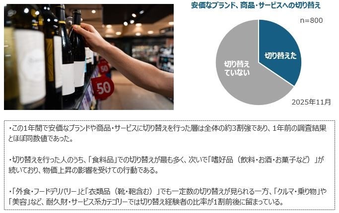 ●消費支出の推移 ●低価格商品へのスイッチ状況 ●購買決定要因
