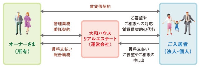 建物の企画・設計から、ご入居者様の募集、管理・運営まで、長期的な資産運用を見据えた賃貸管理サービスをご提供します。オーナーさまがご所有の賃貸物件について、管理業務委託契約を締結し、当社が業務を代行。賃貸管理会社としての経験やノウハウを生かし、経営をサポートします。