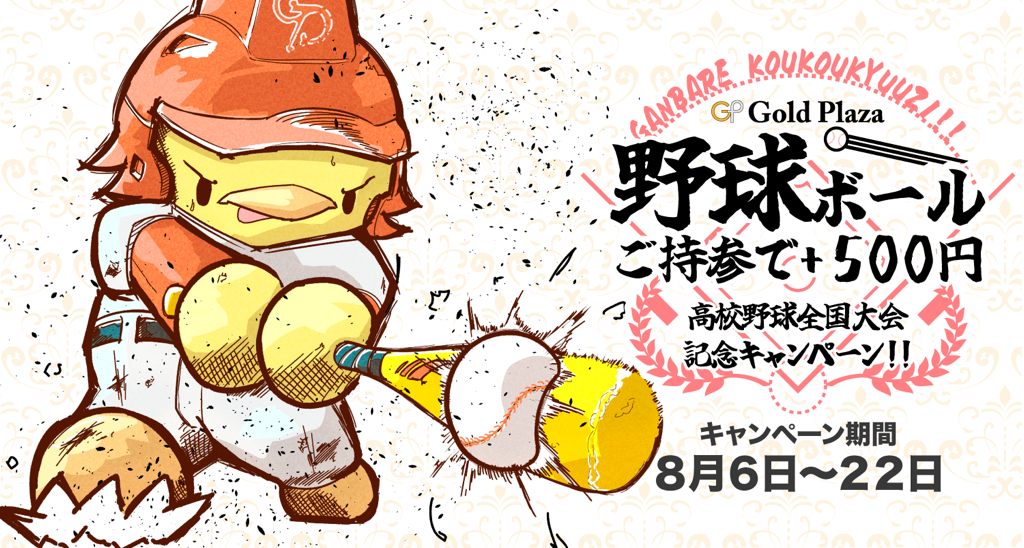 【ゴールドプラザ】みんなで夏の高校野球を盛り上げよう!野球ボールを持ってきたら500円キャッシュバックキャンペーン!!