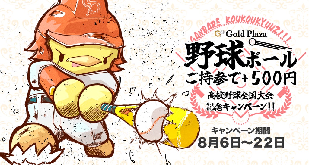 梅雨が明け、夏が本格化して参りました。猛暑やゲリラ豪雨など全国各地で警戒される中、夏の全国高校野球選手権が8月6日より始まります。4年ぶりとなる声援に包まれた甲子園が帰ってきます。ということで今回は、熱気と興奮と涙ある夏の高校野球をみんなで盛り上げるべく、ゴールドプラザでも野球にちなんだキャンペーンを敢行します。