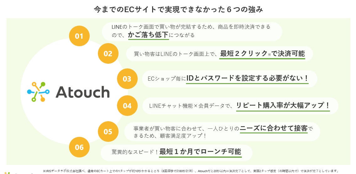 「Atouch」サービスはLINEのトーク画面で商品を選んでそのまま決済まで完了!そんな便利機能を備えたシステムです。