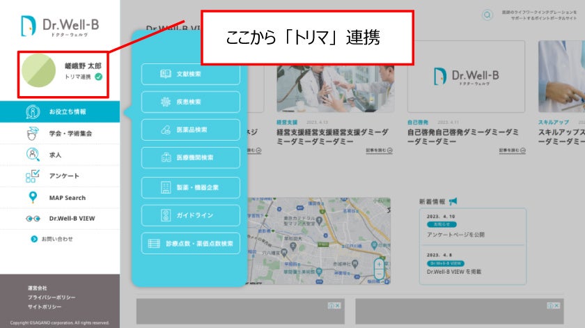 また、「Dr.Well-B」には、「位置:Move(ムーヴ)の情報を活用して、医師/歯科医師の幸せ:Well-Beingを実現する」という意味が込められています。移動するだけでポイントが貯まるM2Eアプリ「トリマ」と連携させることで、医師たちはマイルを貯め、プライベートで活用可能なポイントに交換ができるようになります。