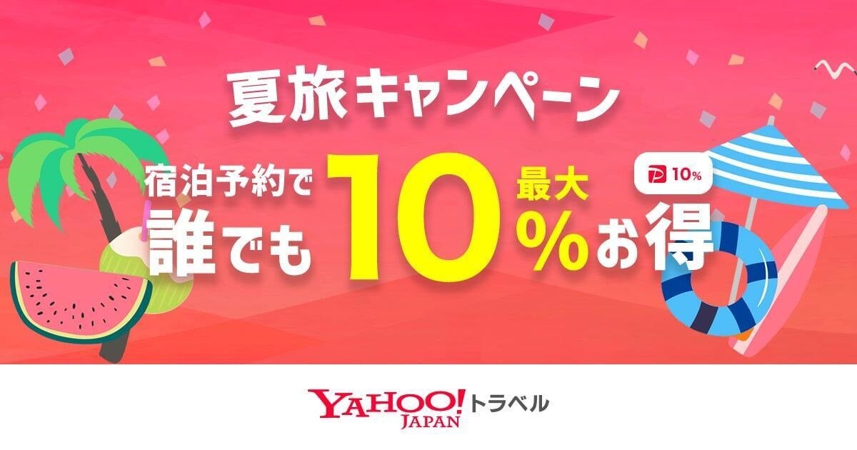 ヤフー株式会社(以下、Yahoo! JAPAN)が運営するインターネット旅行予約サービス「Yahoo!トラベル」は本日より、宿泊施設など現地で決済するのではなく、予約時にクレジットカードからの引き落としで決済する「オンラインカード決済」の利用で宿泊料金が最大10%お得になる「夏旅キャンペーン」(以下、本キャンペーン)を開催します。本キャンペーンは、8月31日(水)まで開催します。