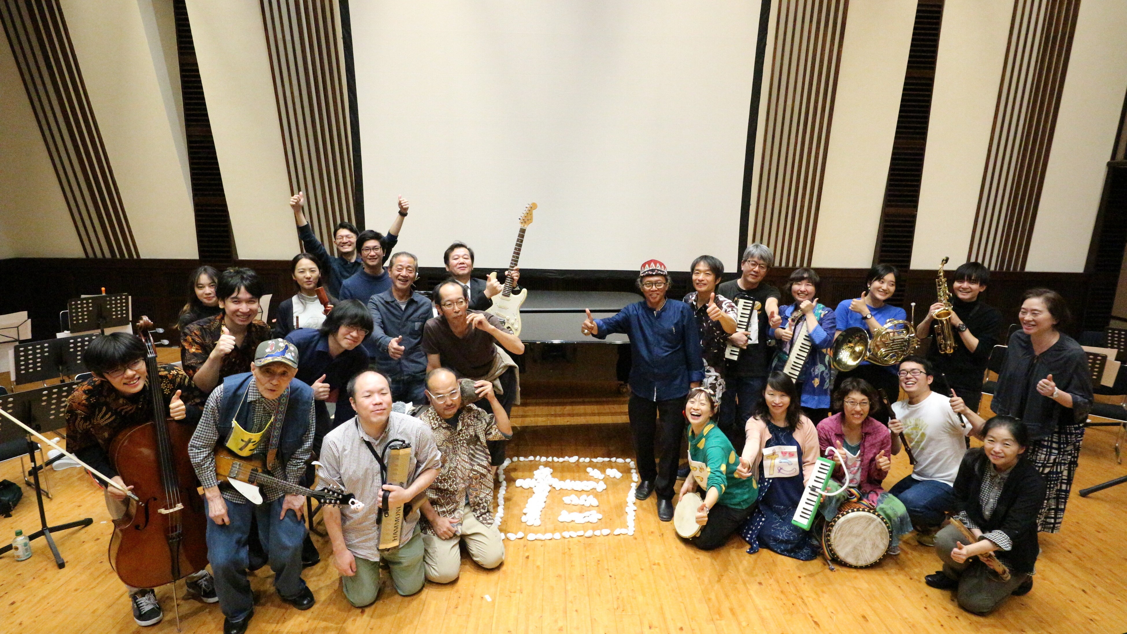 作曲家・野村誠を中心に活動する「千住だじゃれ音楽祭」は、地域の人たちが、気軽にだじゃれを言い合い、そこから音楽を生み出し、市民と共に作り上げる音楽プロジェクトです。足立区の魚市場を舞台に1010人の演奏者によるコンサート「千住の1010人」(2014年)や、アジアの作曲家や民族音楽学者とのコラボレーションも実施。ディレクターの野村誠は、ピアノ、三味線、ガムラン、オーケストラ、瓦、プールなど、あらゆる音から音楽を生み出し、世界各地の人々や動物と交流する作曲家です。著書に「音楽の未来を作曲する」(晶文社)ほか。そして、「千住だじゃれ音楽祭」の中核を担う「だじゃれ音楽研究会(通称:だじゃ研)」は、楽器経験の有無や年齢、住まいも問わず様々な人が集う市民有志の音楽団体です。コンサートや即興セッション、それに向けた練習・ミーティングへの参加などを中心に活動しています。