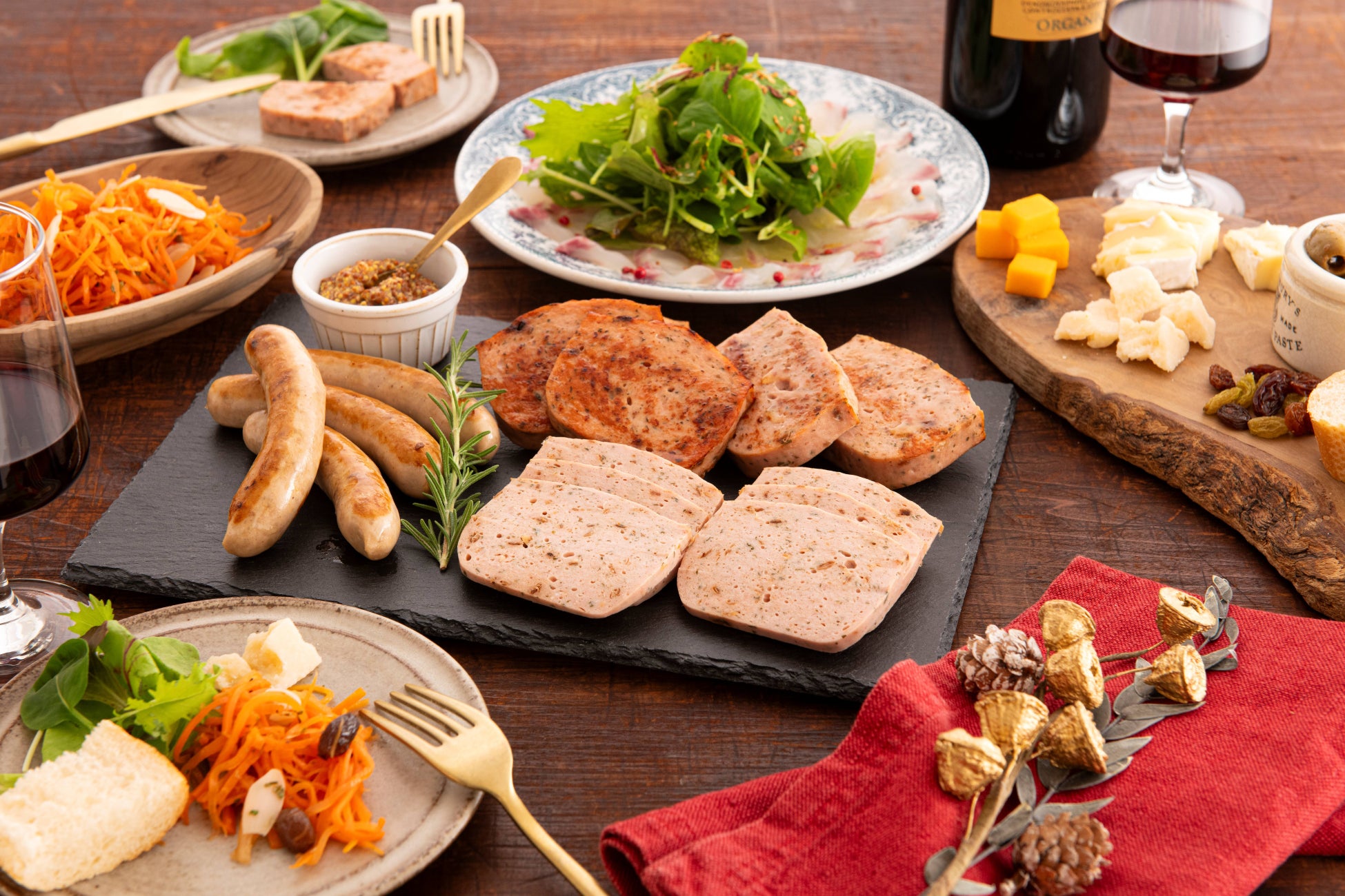 クリスマスや忘年会、新年会に向けて大人数で楽しめるパーティーセットも用意しました。「タマネギぐるりこ®」の香りと国産豚100%のジューシーな食肉の組み合わせは、赤ワインにもピッタリです。
