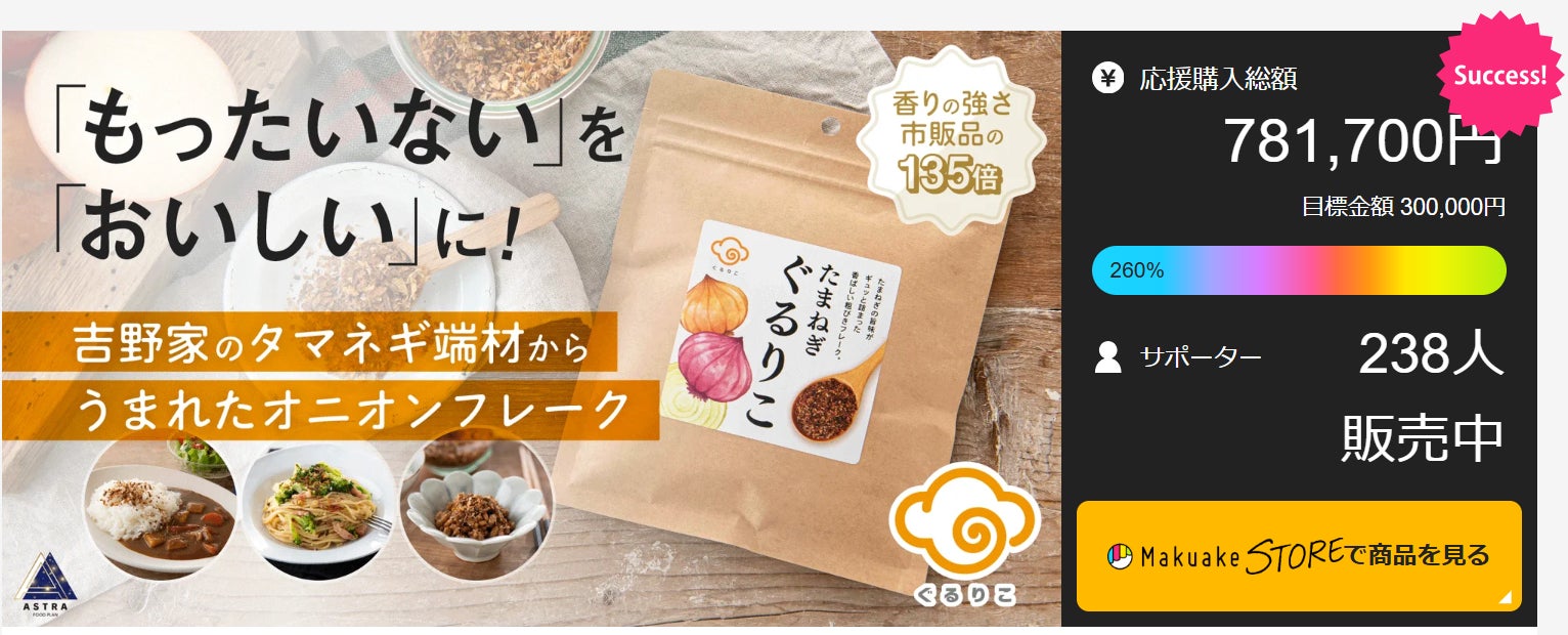 「サステナブルな社会の実現」をミッションに掲げるフードテックベンチャーのASTRA FOOD PLAN株式会社(埼玉県富士見市、代表取締役社長:加納 千裕 以下ASTRA FOOD PLAN)は、2024年11月8日(金)に、応援購入サービスMakuake(マクアケ)で、市販品のオニオンパウダーの135倍香る『タマネギぐるりこ®』入りのソーセージ『ぐるりこ®ソーセージ』と『ジャーマンぐるりこ®ミートローフ』を販売開始いたします。
