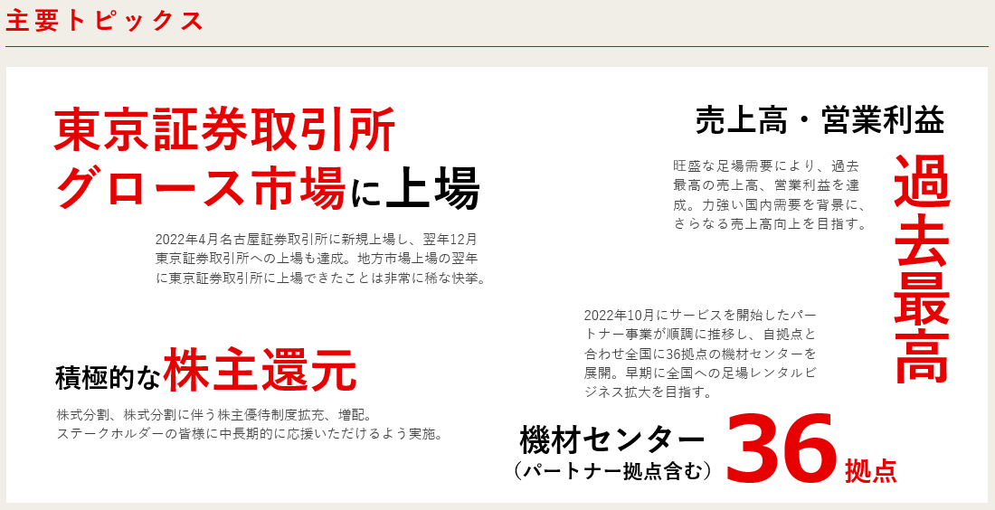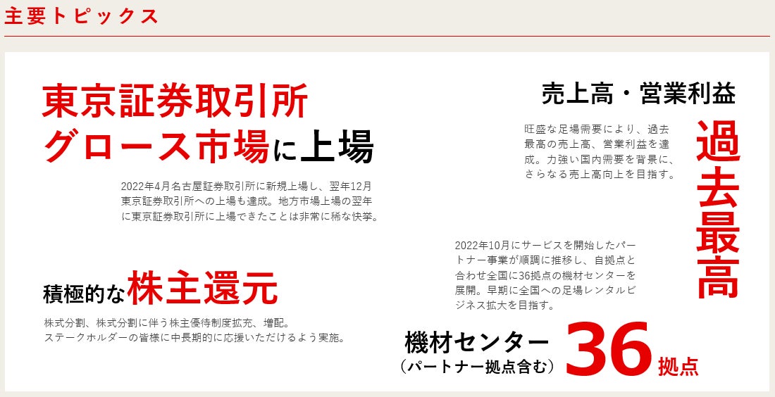 ③機材センターも期初計画通りに新規出店し、全国に36拠点を展開することができました。2025年3月期は更なる成長に向けて動いてまいります。