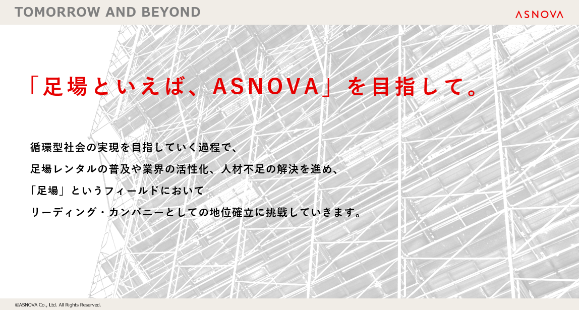 「足場といえば、ASNOVA」を目指して。