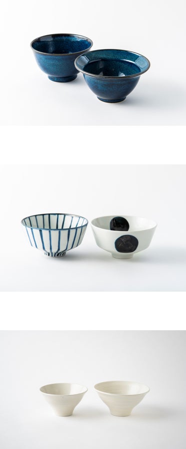 どちらも瑠璃色の釉薬が美しく、おかゆや麺の白が映えます。