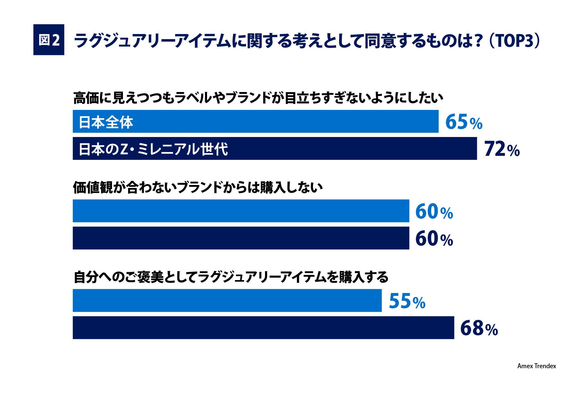 アメリカン・エキスプレス・インターナショナル、Inc.(本社:東京都港区、日本代表/社長:須藤靖洋、以下、アメリカン・エキスプレス)は、日本を含む世界7つの国や地域で2023年8月17日~29日にかけて、ラグジュアリーショッピング、ダイニング、旅行に関する意識調査「Amex Trendex」を実施しました。本調査における日本の回答結果から導き出された、日本における消費動向を紹介します。