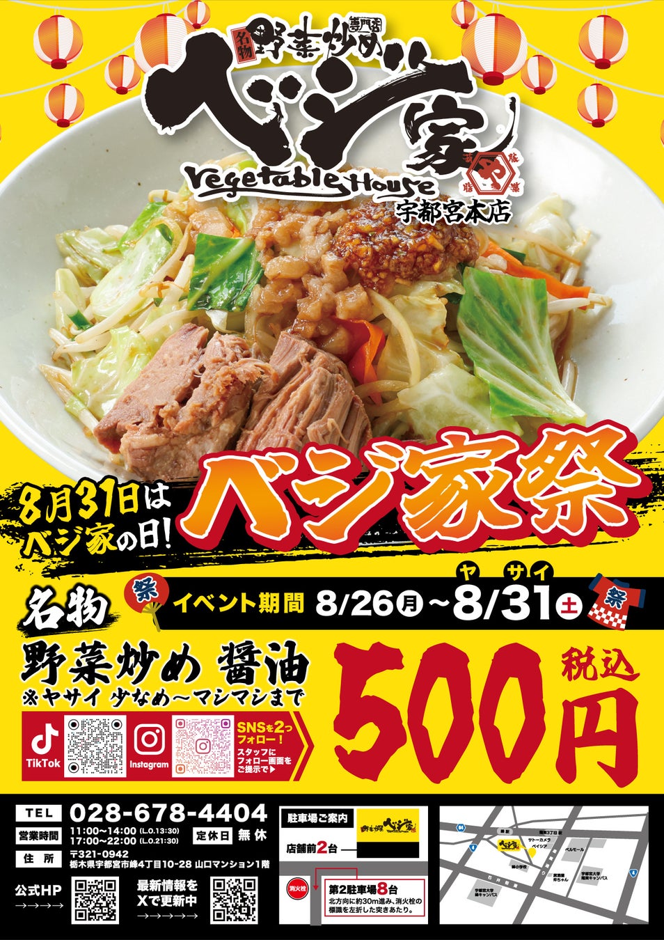 ベジ家宇都宮本店が8/26(月)~8/31(土)まで【ベジ家祭】開催!!