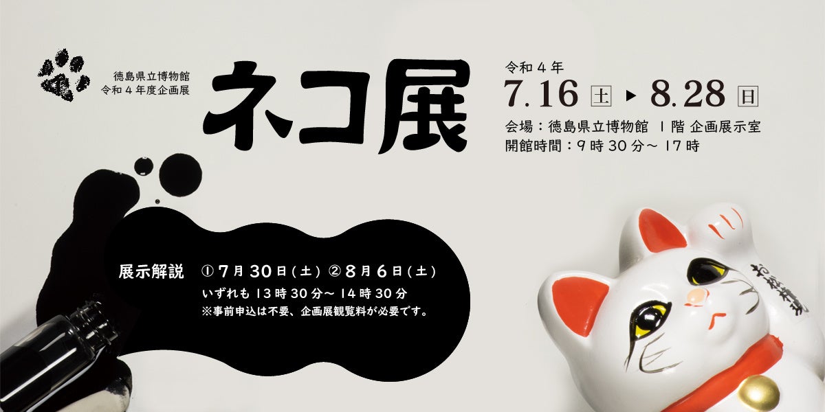 徳島市の徳島県立博物館で、7月16日(土)から8月28日(日)まで企画展「ネコ展」が開催中です。