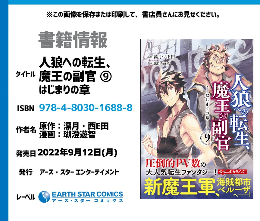 アース・スターノベルより刊行している人気ノベル作品が原作で、現在コミック アース・スターで連載中の人気作品『人狼への転生、魔王の副官 はじまりの章』コミックス第9巻を9月12日(月)に発売いたします。