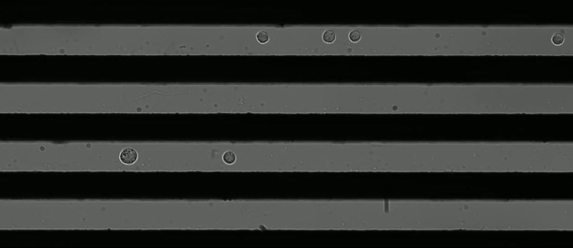 (動画)今回開発したcROTデバイス。流路内で細胞が縦回転しながら流れていく様子が分かる。