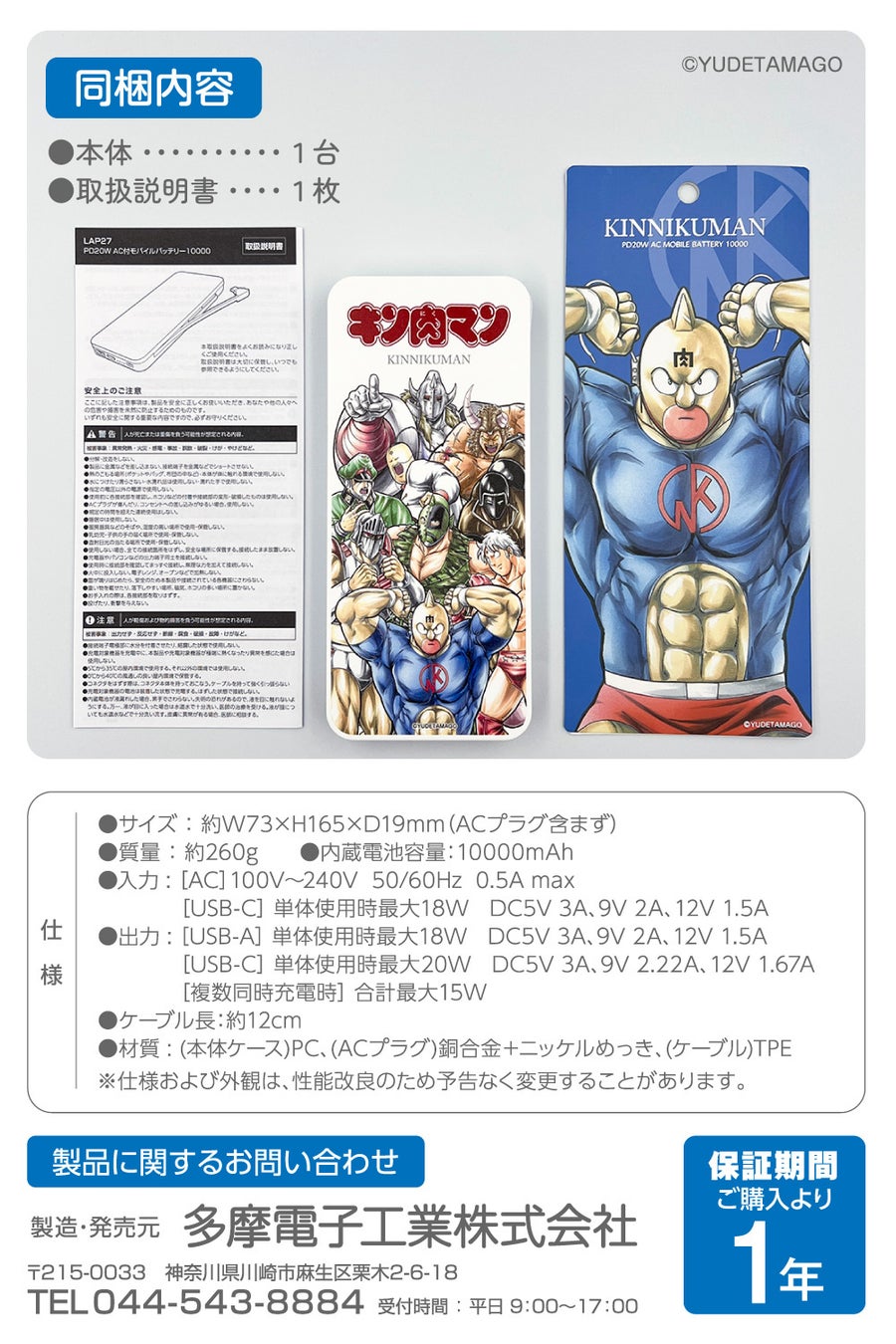 幅広い世代に大人気の「キン肉マン」をデザインしたAC付きのモバイルバッテリー10000mAhを、