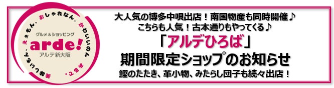 アルデ新大阪「アルデひろば」期間限定ショップのお知らせ