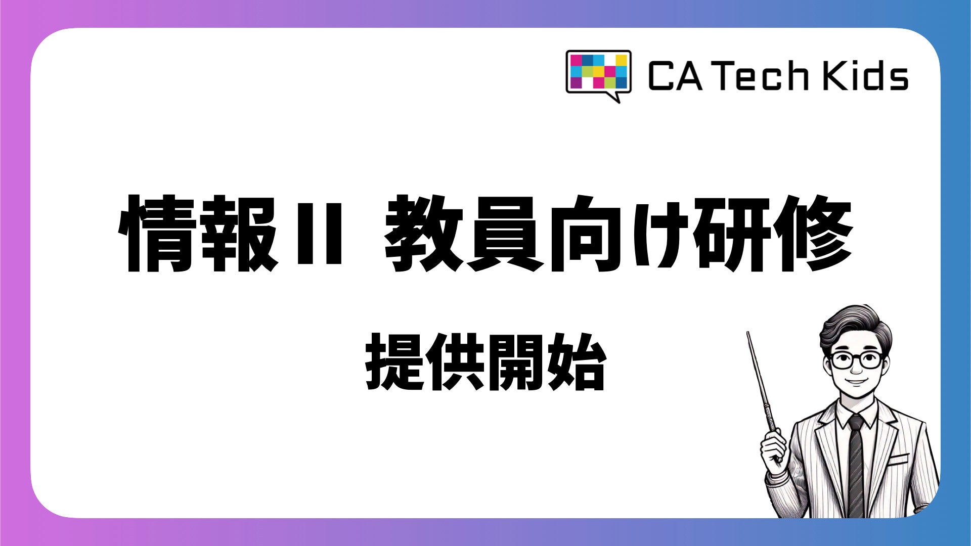 プログラミング教育事業の株式会社CA Tech Kids(読み:シーエーテックキッズ、本社:東京都渋谷区、代表取締役社長:上野朝大)は、高等学校情報科「情報Ⅱ」の教員向け研修の提供を開始いたします。
