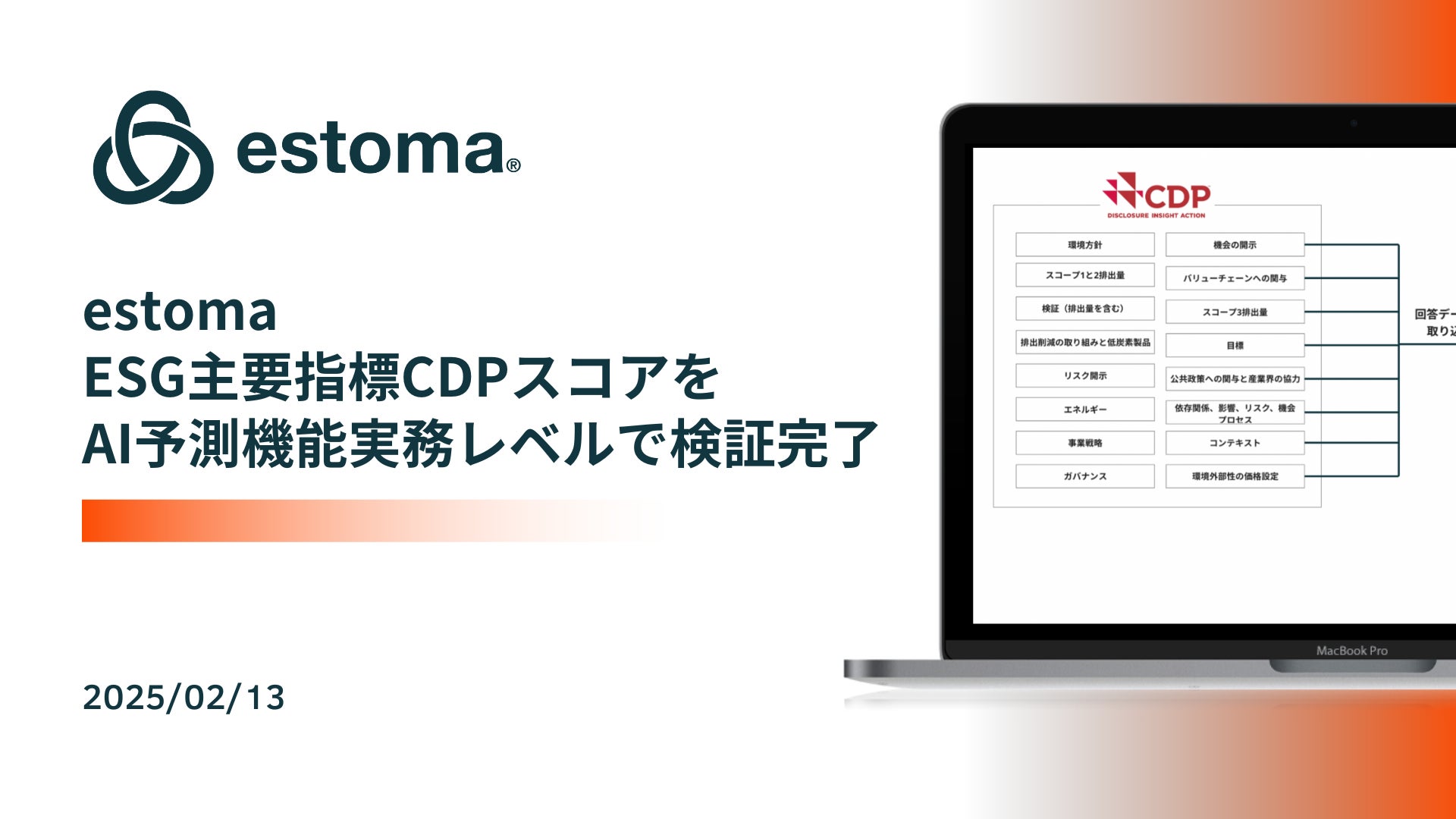 estoma、ESG主要指標CDPスコアをAI予測機能で実務レベルで検証完了