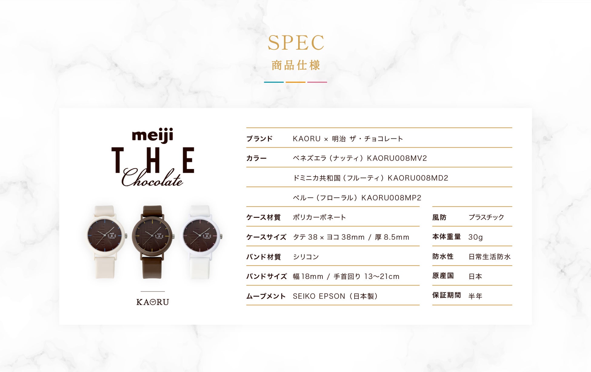 香りに包まれる腕時計ブランド「KAORU x 明治 THE Chocolate」コラボレーションウォッチがリニューアル!