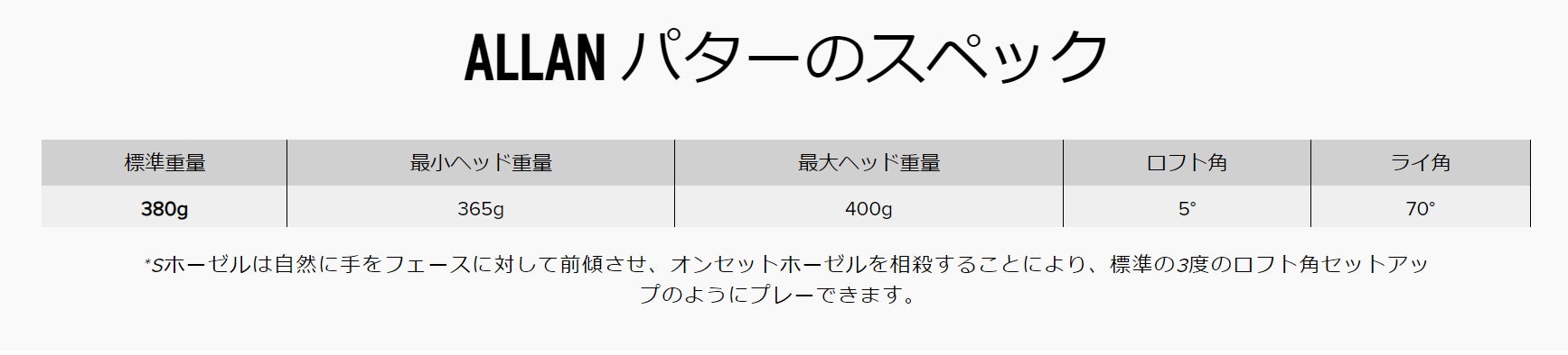 PXG創業者兼CEOのボブ・パーソンズは次のように話しています。「パットが上手くいかず悔しい思いをしているそんな時は、PXGのAllanパターを試してみるべきです。楽しく、打ちやすく、魔法のように感じます。実際に、テクノロジーの効果に非常に感銘を受けたので、このパターに弟の名前のAllanを付けることにしました。彼は、ゴルフ愛好家で、絶対に気に入ってくれることでしょう。」