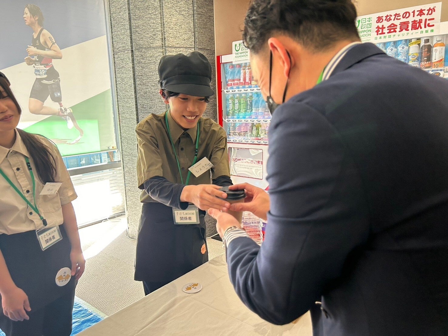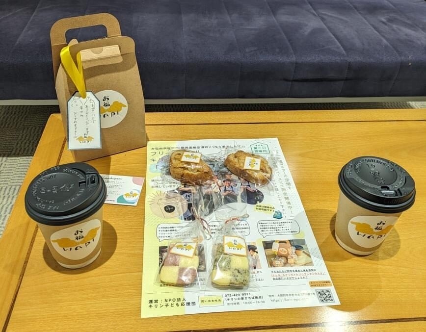 特定非営利活動法人キリンこども応援団(大阪府泉佐野市、代表 水取博隆)は、運営する「フリースクールキリンのとびら」に通う小中学生17名が自主的に活動する体験型企画として、カフェ「お福wapi」(おふくわぴ)を2024年2月16日(金)に開催された日本財団主催イベント「子どもWEEKEND」において一日限定で出店しました。約200名の来場者の方にお立ち寄りいただき、温かい飲み物と焼き菓子を販売いたしました。