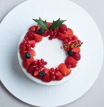 クロンヌ・ド・ノエルは、フランス語で“クリスマスリース”という意味です。4種のベリーをクリスマスリースに見立ててデコレーションいたしました。甘さ控えめながらコクのある生クリームに、ベリーの甘みと酸味がマッチします。