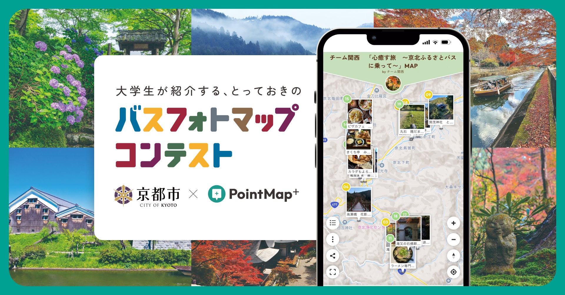 【活用事例】大学生が紹介する「とっておきのバスフォトマップ」コンテストが、デジタルマップ作成サービス『PointMap+』を使い、実施されました。京都市都市計画局主催/スタートアップ iHistory