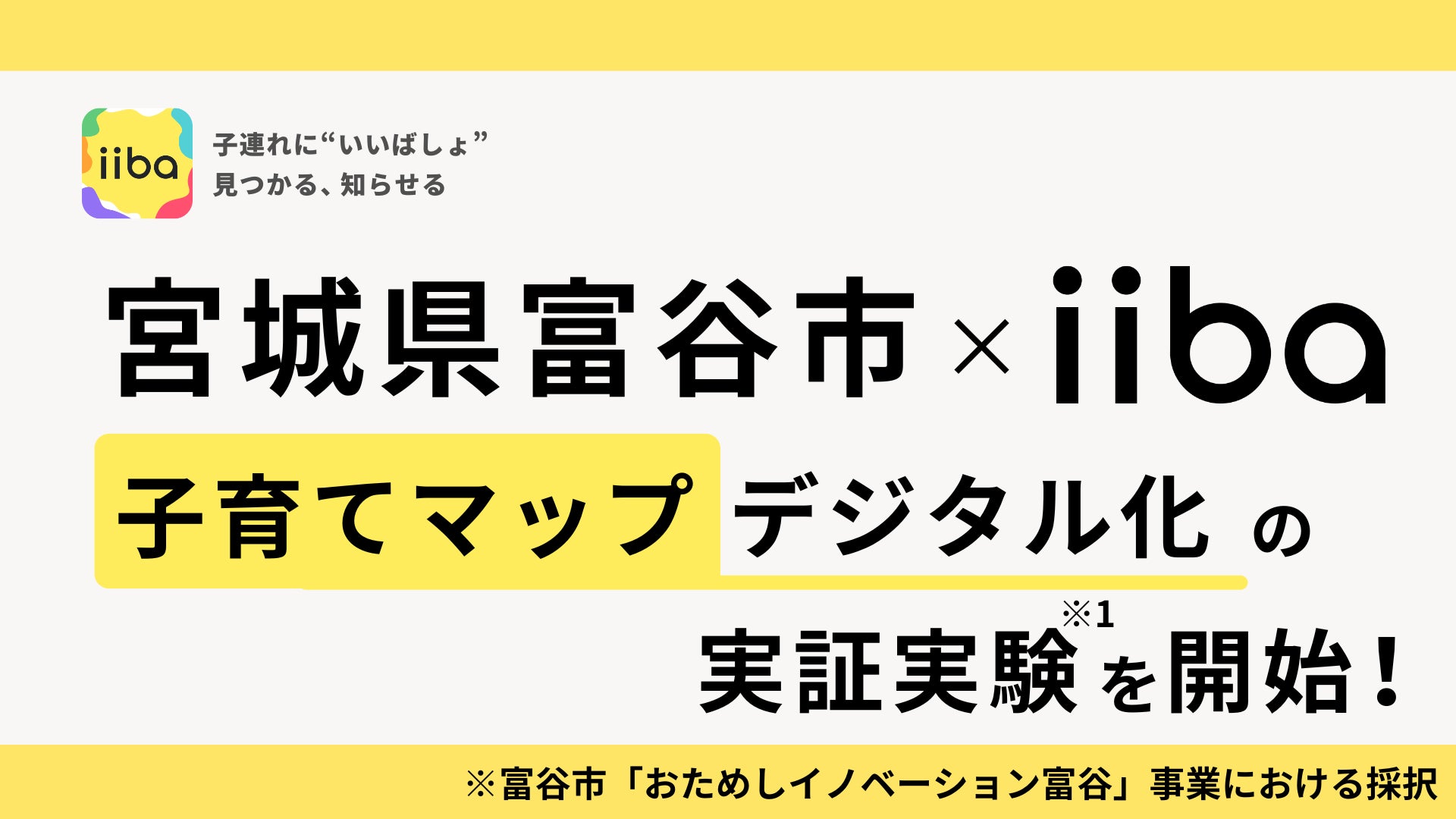 株式会社iiba(本社:東京都港区、代表取締役社長:逢澤 奈菜、以下当社)は、宮城県富谷市と連携し、地域における子育て支援の充実および地域経済の活性化を目的とした実証事業「富谷市子育てマップのデジタル化実証実験」を開始することをお知らせいたします。