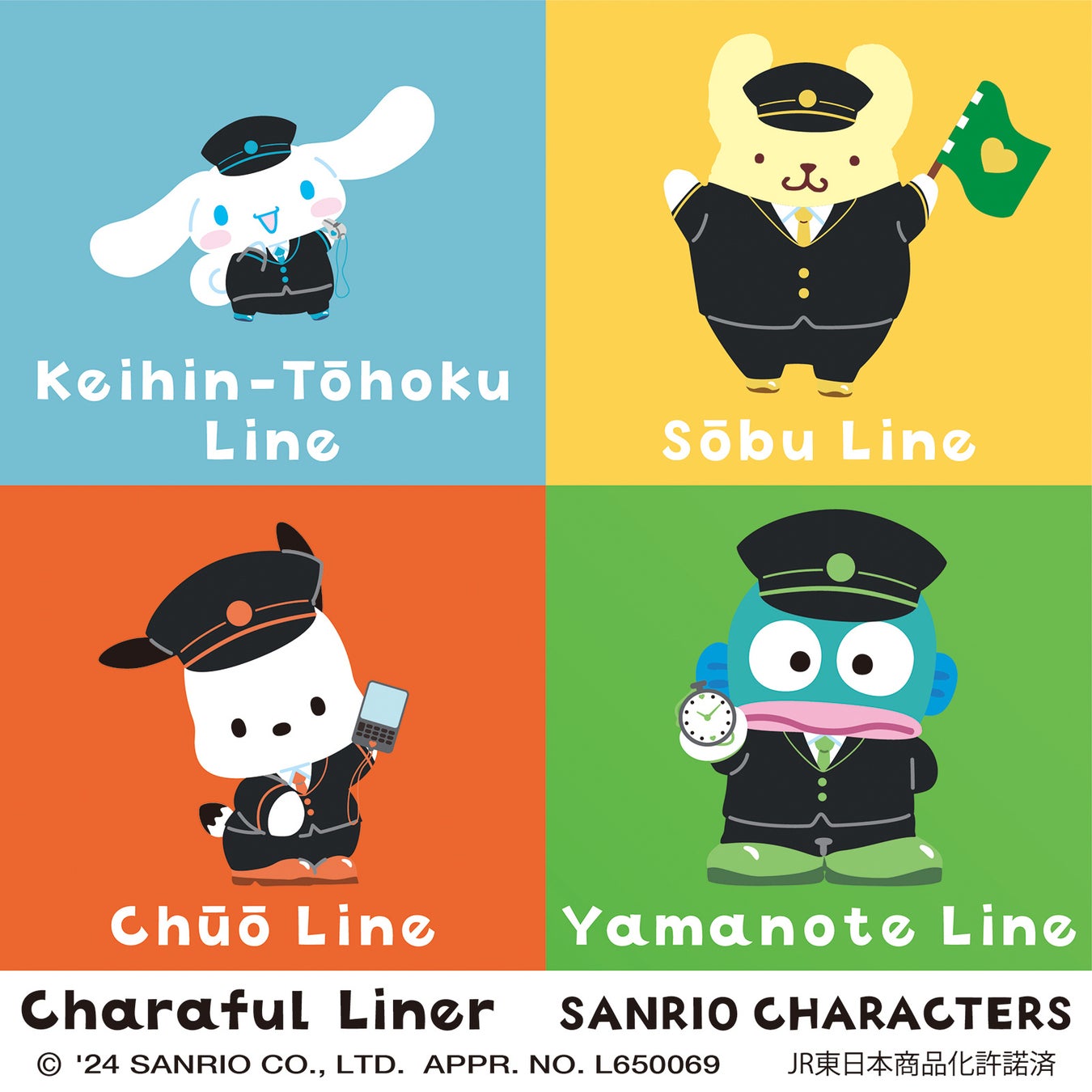 シナモロール、ポムポムプリン、ポチャッコ、ハンギョドンの4キャラクターが車掌さん風でとっても可愛い。