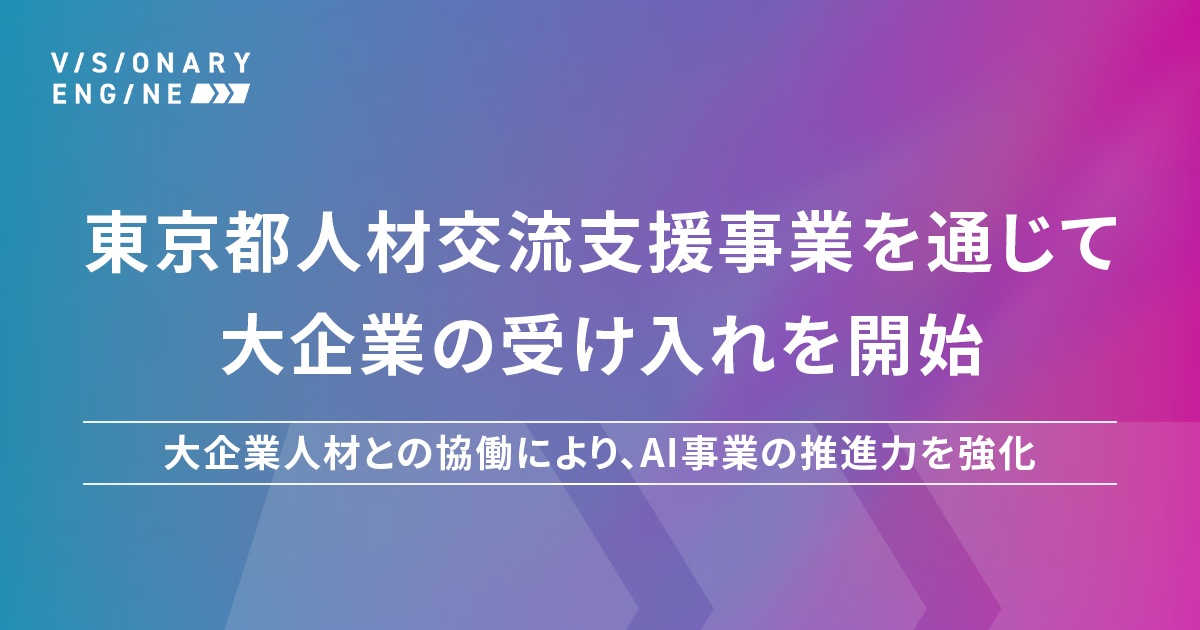 株式会社ビジョナリーエンジン(本社:東京都港区、代表取締役:小栗 伸)は、東京都が実施する「令和7年度 大企業と連携した中小企業・スタートアップの成長促進に向けた人材交流支援事業」を通じて、大企業に所属する兼業人材との協働を開始しました。