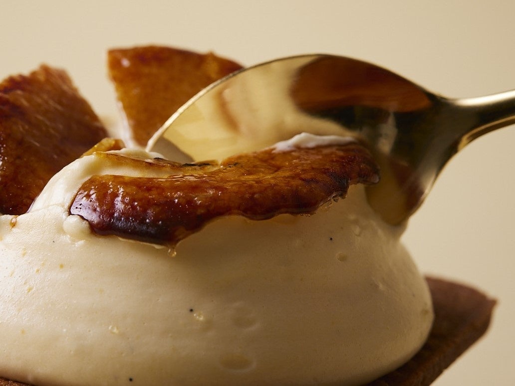 濃厚なクリームと香ばしいブリュレのアクセントが絶妙な、クレームブリュレ生チーズケーキです。美味しさの決め手は、パリパリで香ばしいカラメルと、たまごの濃厚さと優しい甘さのクリームが織りなす甘さとほろ苦さのバランス。