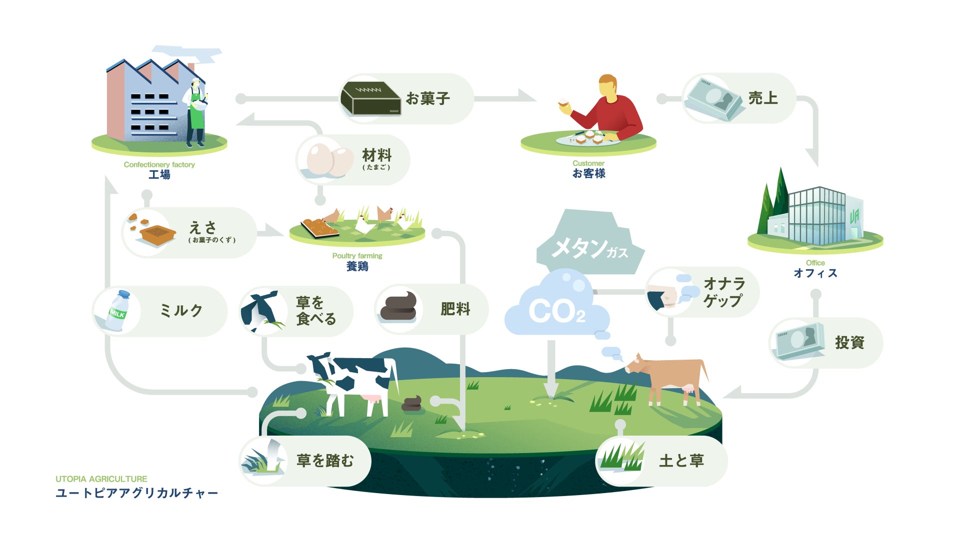 ユートピアアグリカルチャーは、「GRAZE EXPERIMENTS」をテーマに持続的で美味しいお菓子作りと放牧酪農・平飼い養鶏に挑戦している農業生産法人です。お菓子は食べなくてもよいものではある。それでも食べたくなるお菓子だからこそ、地球環境に悪影響をもたらさずに心から楽しめる、本当に美味しいお菓子作りを目指しています。