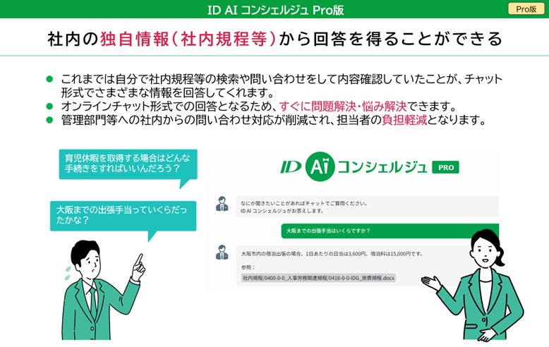 インフォメーション・ディベロプメント、社内情報に対応したエンタープライズ向け企業専用AIチャットサービス「ID AI コンシェルジュPro版」を販売開始