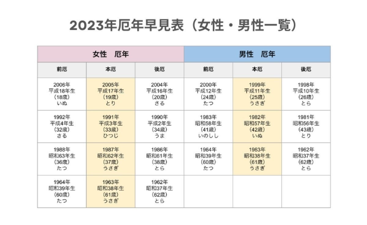 - 2023年 厄年早見表
