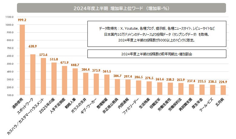 「はたらくソーシャル・リスニング(24年度上半期)」を発表 2024年度上半期、SNSで急増した投稿トップ3 「通称使用」「スポットワーク」「カスハラ」