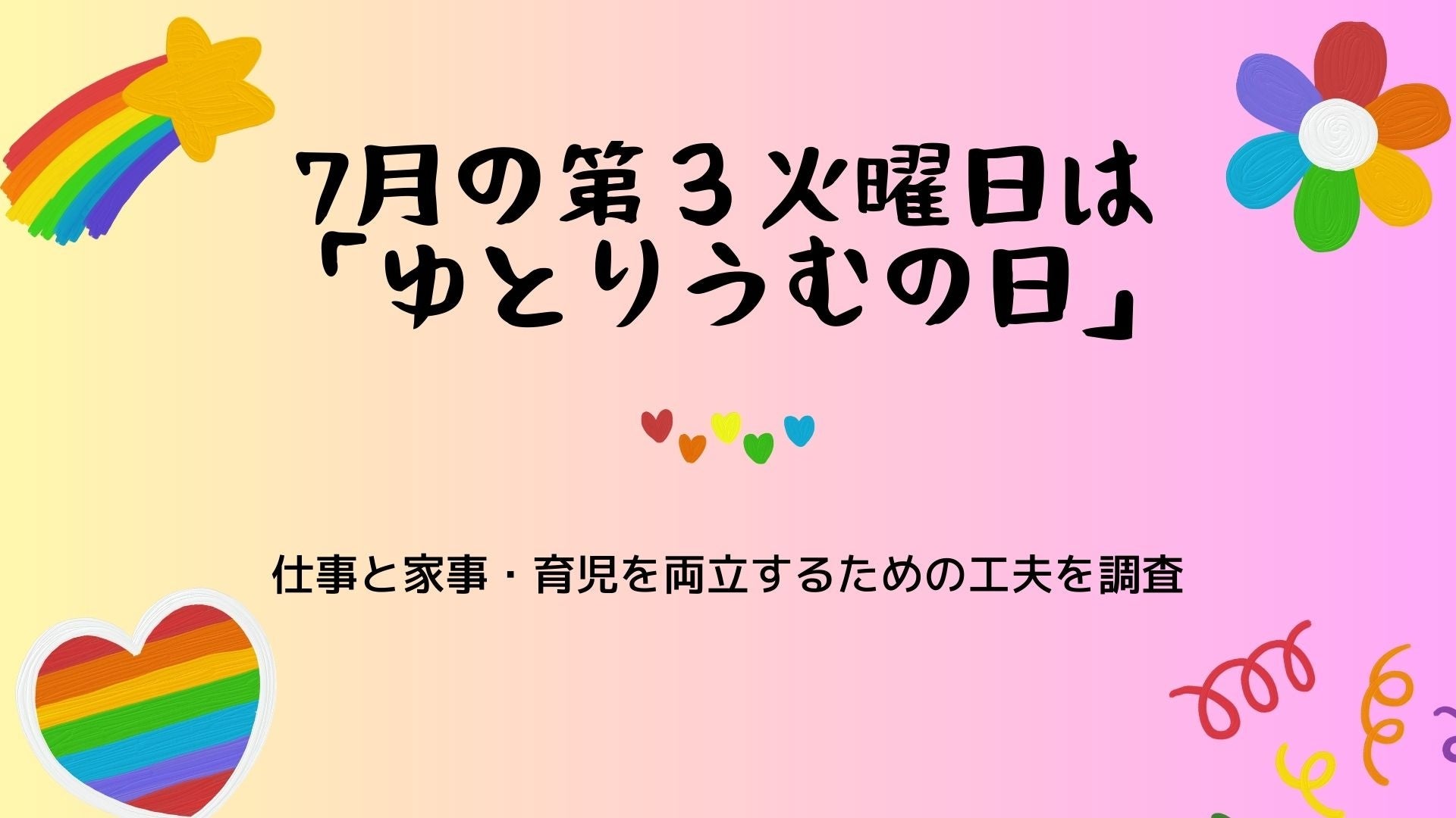 子供が夏休みに入り、家事・育児がますます忙しくなる時期に合わせ、国民の祝日である「海の日」の翌日の7月第3火曜日を「ゆとりうむの日」として「ゆとりうむプロジェクト」により制定された記念日です。