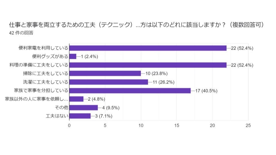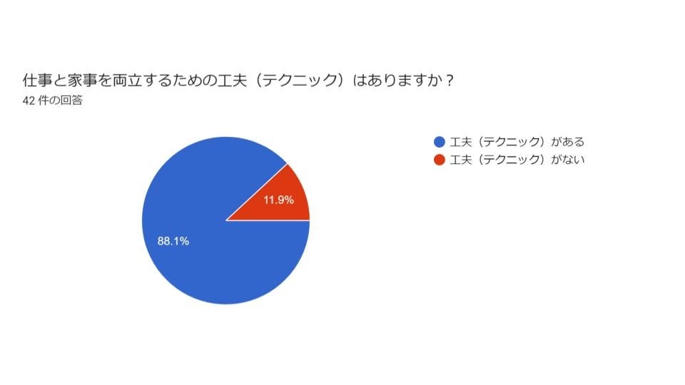 そんな環境で働くオレコンスタッフの中から、プライベートで家事・育児を担っているスタッフはどのように仕事と両立し、生活にゆとりを生むための工夫をおこなっているのか調査いたしました。