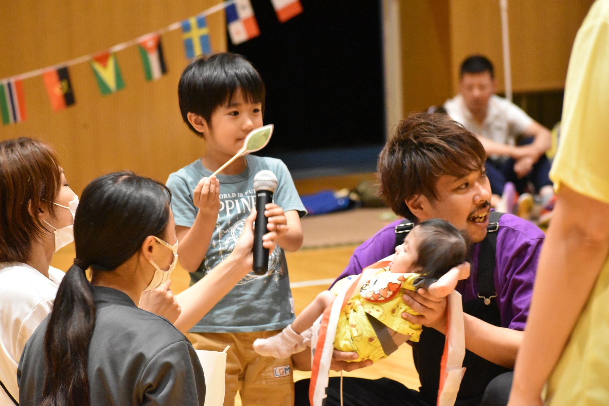 優勝した赤組のこどもたちには金メダル、準優勝の白組のこどもたちには銀メダルが授与されました。