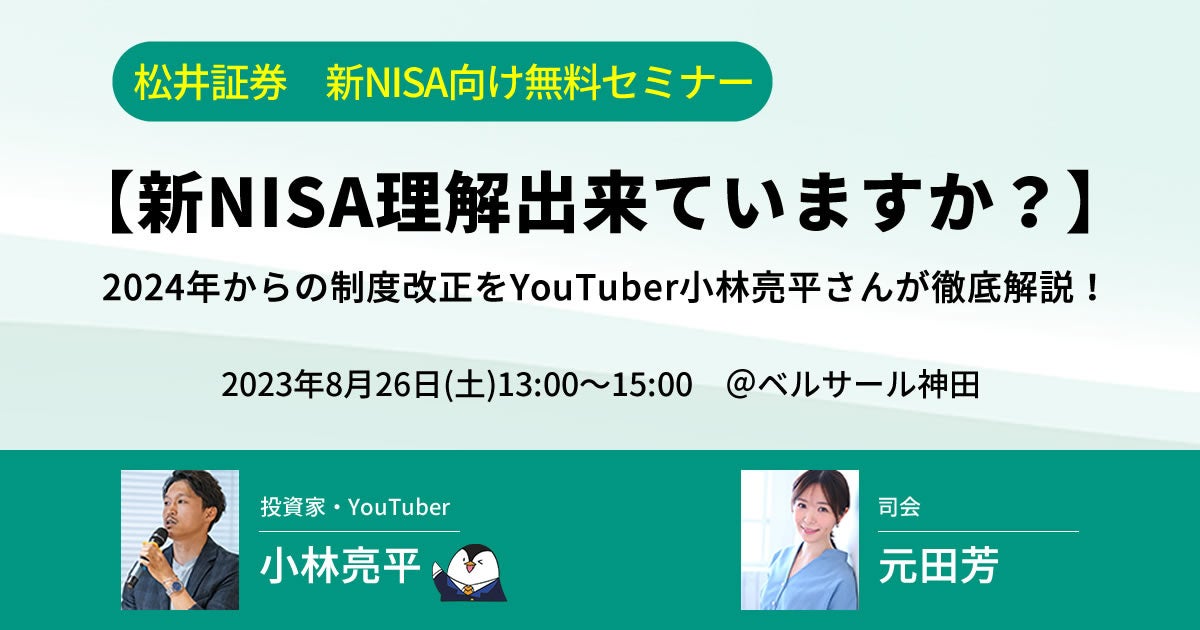 2024年から始まる新NISA制度を徹底解説!登録者数56万人超の人気YouTuber小林亮平さんによる無料セミナーを開催