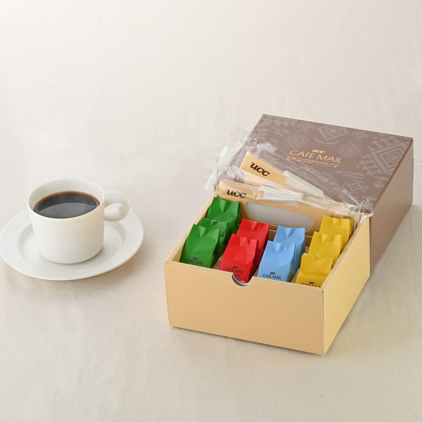 「UCC CAFE MAIL」は、世界各国の個性豊かなコーヒーを、まるで“その国から届いた手紙”のように楽しめる詰め合わせギフトです。