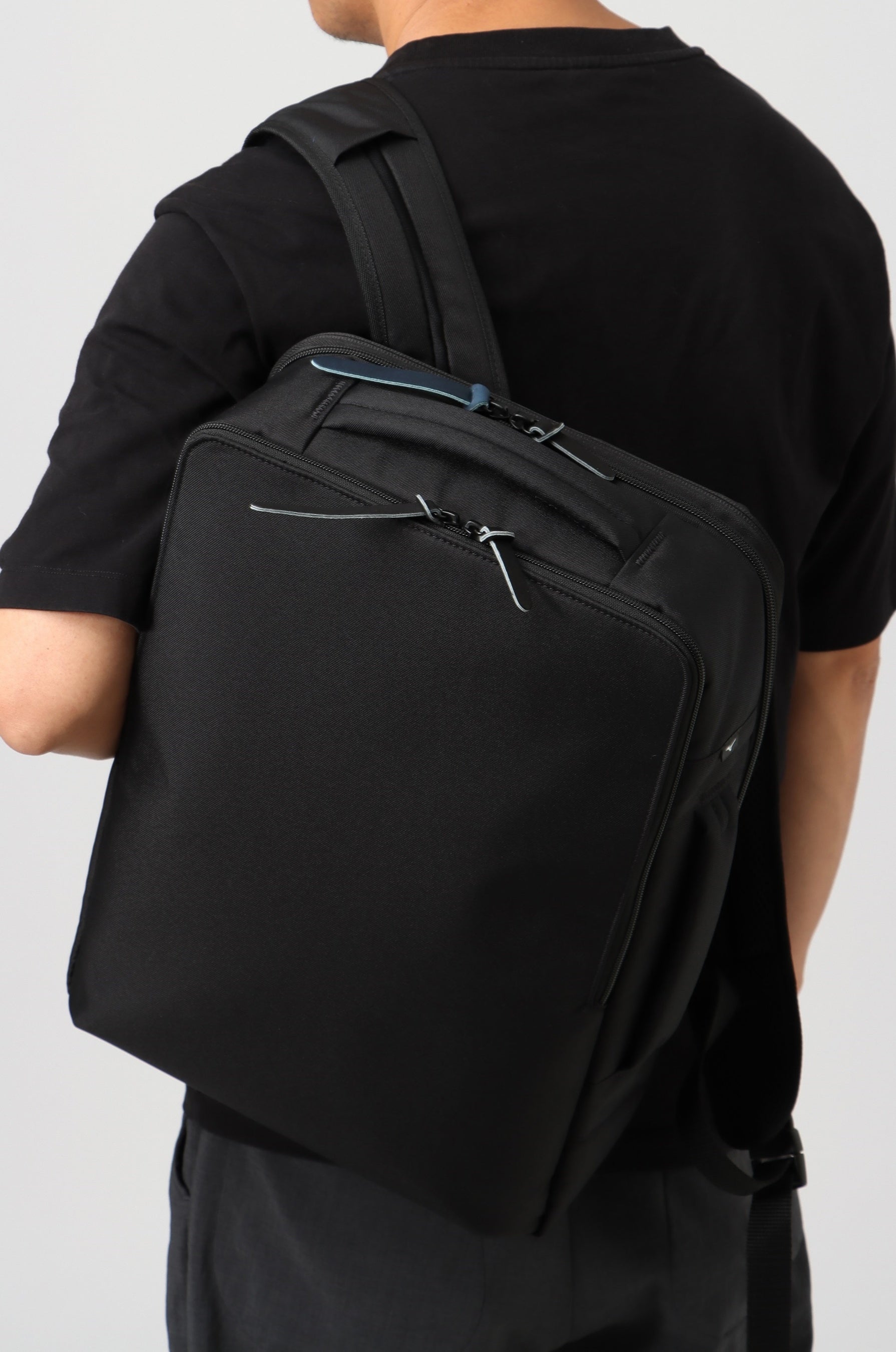 新型コロナウイルスが5類に移行し、ビジネスパーソンの出張機会も増加傾向にあります。第4弾となるバックパックには、出張機会の増加に合わせて前回よりもサイズ感を一回り大きくすることに加え、マチ幅を変えられる拡張機能を施し、最大約27ℓまで収納が可能です。さらに表素材には、出張などのハードワークでも傷がつきにくい耐久性の高いコーデュラポリエステルを新たに採用しました。この素材は、撥水性にも優れ、急な雨でも水を弾く仕様となっています。