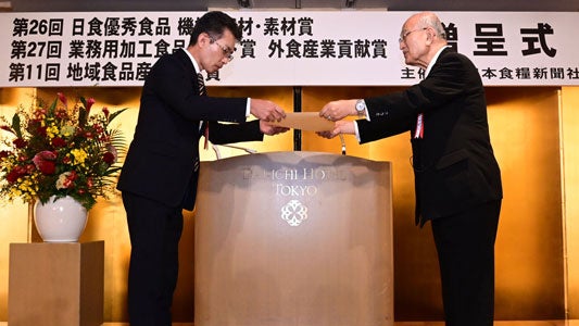 「業務用加工食品ヒット賞」は、株式会社日本食糧新聞社が主催し、全国の有力業務用食品卸によるモニター選考により選出され、業務用卸各団体代表者で構成される選考委員会の審議を経て決定したものです。外食産業の活性化などに貢献した業務用加工食品や素材の栄誉を称える賞となります。