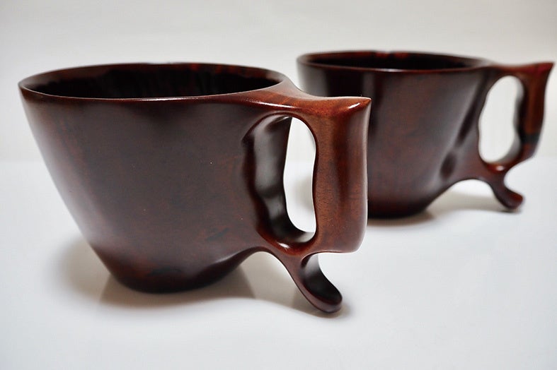 ライフワークとして、箸職人の経験を活かし、食事を支える木の道具を制作し、全国の百貨店やギャラリーで箸や食器を中心に展示会を行うMiyabow。木のカップは保温性があり熱いものは冷めにくく、冷たいものはぬるくなりにくい、手彫りのカップ。