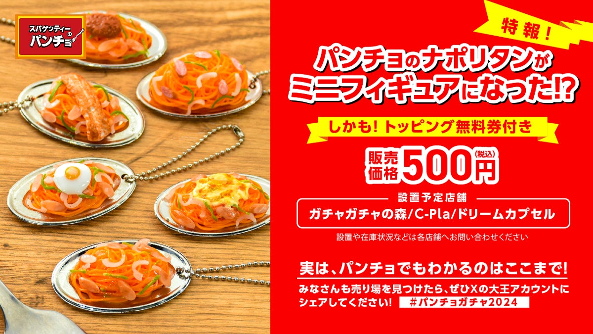 『スパゲッティーのパンチョ』の看板メニューであるナポリタンをイメージしたカプセルトイ「スパゲッティーのパンチョ ミニチュアコレクション」が2024年7月下旬に発売されます。